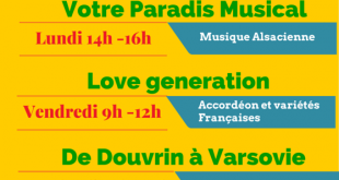 Vous voulez passez une dédicace a vos proches ? Faites plaisir à vos amis et votre famille, en demandant leur titre préféré au 09.52.22.22.07 (appel gratuit) ou sur notre livre d’or Le lundi de 14h00 à 16h00 pendant Votre paradis musical animé par Jean-Marc et Ghislaine : musique Alsacienne, Tyrolienne et Folkorique. (rediffusion le dimanche de 8h à 10h) Le …