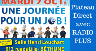 Radio Plus sera présent à Béthune pour une émission en direct du salon de recrutement « Une journée pour un job » ! Pôle emploi et la Ville de Béthune organisent la nouvelle édition d’une « Journée pour un job ». Une soixantaine d’entreprises (représentant l’ensemble de l’activité du Béthunois) seront présentes. Outre les entreprises, il y aura aussi des recruteurs comme l’armée de l’air, …