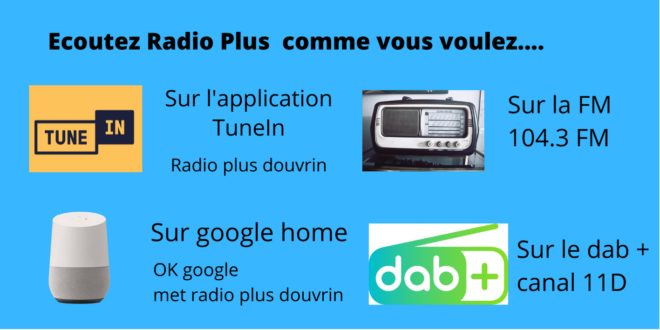 Pour nous écouter sur Tunein c’est ici https://tunein.com/radio/Radio-Plus-Douvrin-1043-s1278/