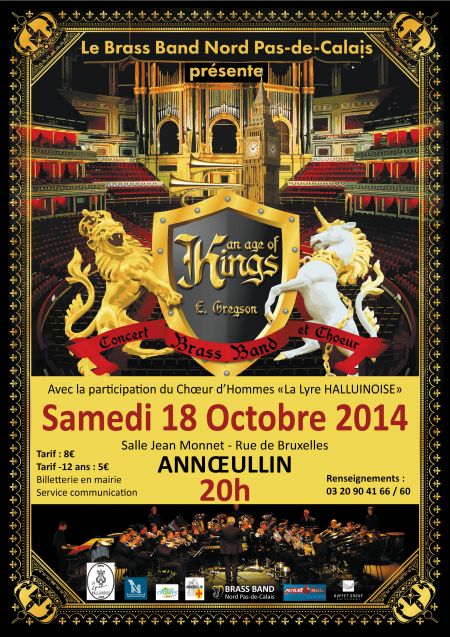 Le groupe reprendra l’oeuvre « An Age of Kings » de Gregson avec la participation du Choeur d’Hommes » La Lyre Halluinoise »