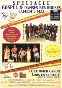 L’association Kabé-Bénin de Loos-en-Gohelle organise avec l’association ASE Bénin ce samedi 05 mai un spectacle Gospel et Danses Béninoises au profit du Bénin.