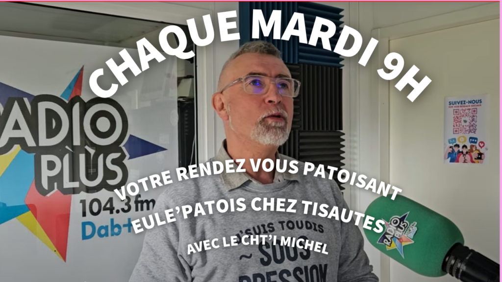 Radio Plus (104.3 FM et en DAB+) lance une toute nouvelle émission patoisante : “Eule’Patois chez Tisautes”, animée par le Ch’ti Michel ! Retrouvez-le chaque mardi matin de 9h à 10h pour une heure pleine de rires et de convivialité. Au programme : sketches savoureux, chansons en patois, histoires locales, invités surprenants et bien sûr une bonne dose de bonne humeur à la sauce ch’ti ! Une émission qui met à l’honneur le parler et la culture du Nord, dans la joie et la simplicité. Alors branchez-vous sur Radio Plus et laissez-vous emporter par l’ambiance chaleureuse Eule’Patois chez Tisautes!