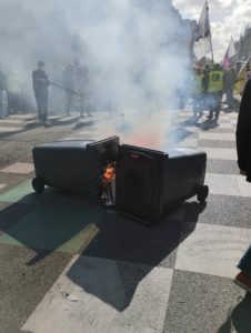 Est-ce cette lenteur qui a engendré rapidement des tensions? En effet, les premières tensions n’ont pas tardé à arriver. Entre le croisement de la rue Nationale et de la rue Solférino, une première interpellation a eu lieu. De nombreux feux de poubelles et abribus dégradés ont été observés sur le parcours.