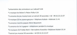que cela soit pour le jeu ou les dédicaces appelez uniquement pendant qu’il y a de la musique sinon vos appels ne seront pas pris en compte tout ceci pour le bon déroulement de l’émission.