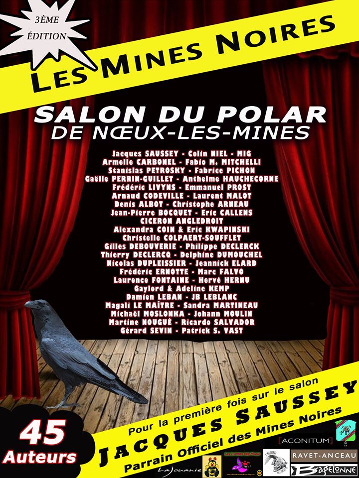 - Nous parlerons également du salon du polar Les Mines noires, à Noeux-les-Mines, avec sa coordinatrice, Bénédicte Degrugillier (salon qui se tiendra le 12 février, salle Georges Brassens) ;