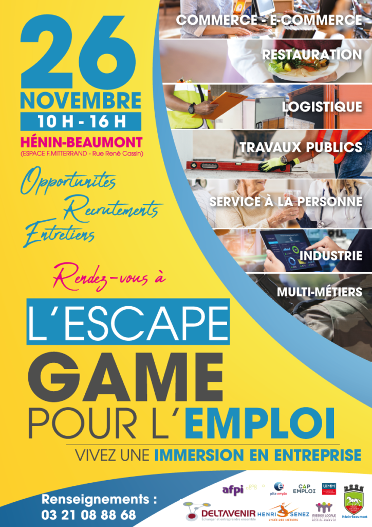 Le mardi 26 novembre 2019, l’équipe de Radio Plus sera en direct de l’Escape Game de l’Emploi, de Henin-Beaumont, de 10h à 16h.