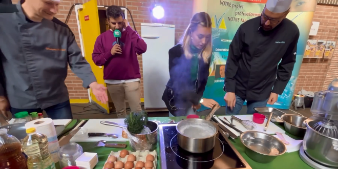 Au cours de cette journée, les publics en reconversion comme les scolaires ont pu profiter de la présence de 40 exposants divers et variés pour mieux définir leur projet professionnel ! Transport, logistique et BTP (et bien plus !) sont autant de domaines auxquels les visiteurs ont pu s’initier grâce aux ateliers proposés par AFTRAL (simulation de poids-lourd), ASSIFEP (atelier de pose de dalles) et AFPI (conduite de chariot élévateur). Nos alternants ont même pu se familiariser avec le métier de chef cuisinier sous la supervision de Vecteur Formation !