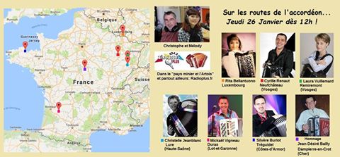 Alors branchez Radio Plus demain jeudi 26 janvier à 12h, pour vous balader Sur les Routes de l’Accordéon, c’est avec Christophe et Mélody sur le 104.3FM, la Radio qui vous en donne plus 😉