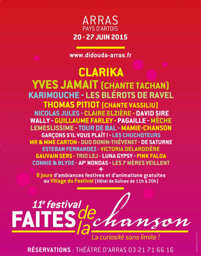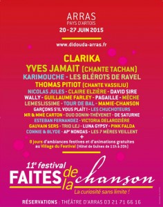 Ce jeudi 11 juin de 14h à 16h, dans son émission « Salut les artistes« , JF Auclair reçoit Joël LEGAGNEUR programmateur du festival « Faites de la chanson » qui se déroule à Arras du 20 au 27 juin 2015 !