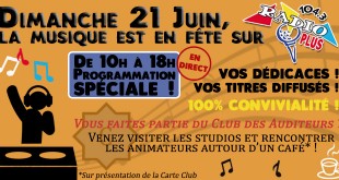 Dimanche 21 juin, toute la journée, RADIO PLUS met son habit de fête avec de nombreuses surprises pour une émission spéciale en direct avec plus de 10 animateurs . Retrouvez Julien, Francky, Willy, Bernard, Ghyslaine, Jean Marc, Patrick, Eric NC, Henri, Dominique, Romane,Yves,Valentin … Retrouvez également des anciens animateurs de radio RMA et radio cité Lens qui passeront faire un …