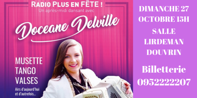 Dimanche 27 octobre , dès 15h à la salle des Fêtes Lirdeman à Douvrin, venez vous détendre danser et faire la fête avec Doceane Delville et son accordéon.