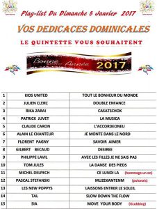 Ce dimanche 08 janvier 2017 entre 10h et 13h votre retrouverez votre émission « Vos dédicaces dominicales ». Vous pourrez passer vos dédicaces en direct pendant l’émission en appelant au 09 52 22 22 07 ou sur la page facebook de votre émission « Vos dédicaces dominicales – Radio Plus » .